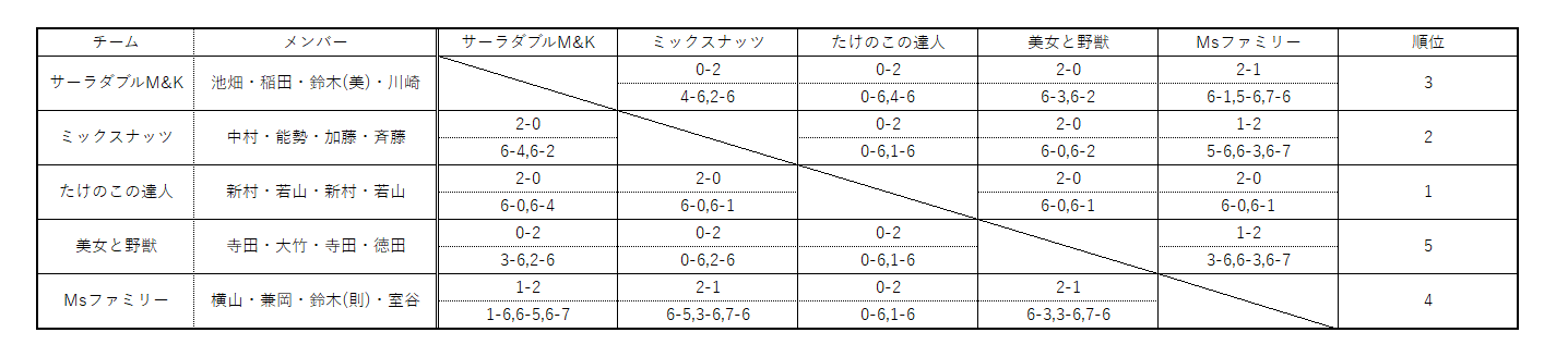 Ms竜洋団体戦 第5戦 MIXダブルス 2024/5/5