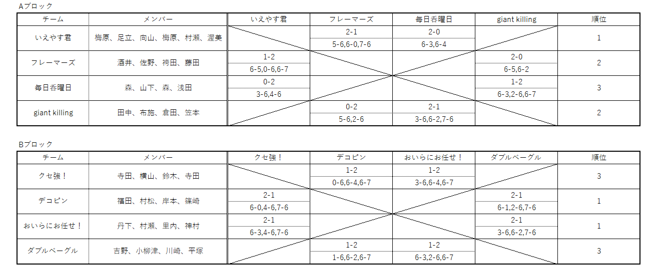 2位3位トーナメント優勝 ダブルベーグル (吉野、小柳津、川崎、平塚)